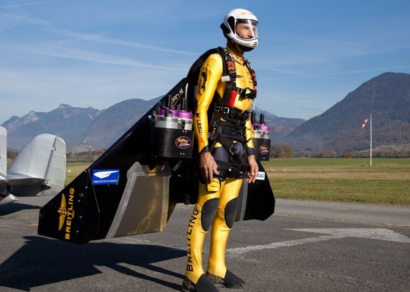人們一直以來都想在天空飛翔,直到發明了飛機,總算完成了不少人的心願。不過瑞士有人認為,飛機也不能滿足他,索性穿上噴射裝置飛行,甚至和滑翔飛機同場表演花式飛行。