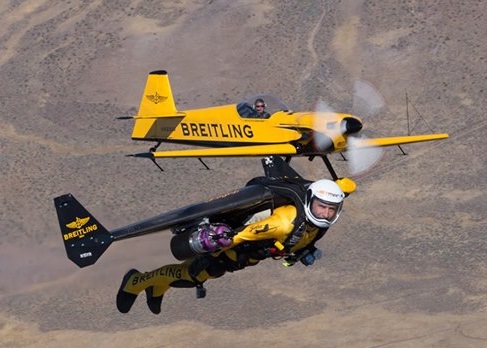 「火箭人」一飛沖天 與飛機表演花式飛行