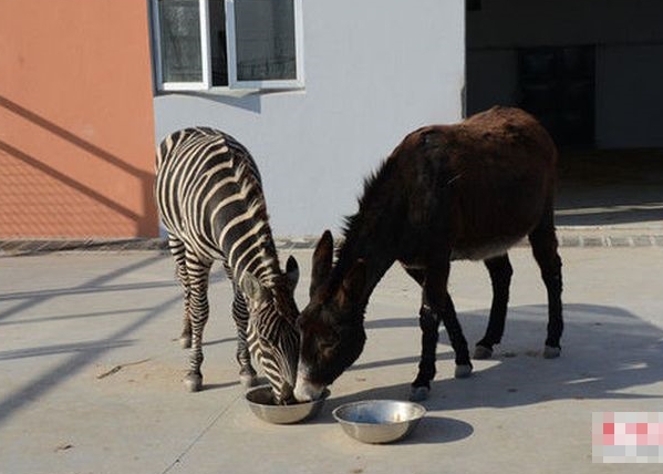 在江蘇宿遷一間動物園內,一隻雌性驢子去年初被送到動物園內,與一隻剛「喪妻」的斑馬同住。起初牠們常常為搶食物而大動干戈,但熬過了磨合期,斑馬和驢竟然愈來愈恩愛。幾個月後,動物園飼養員王師傅發現驢子懷孕了,自此,斑馬時刻陪伴在驢子身旁,細心照顧懷孕的妻子。