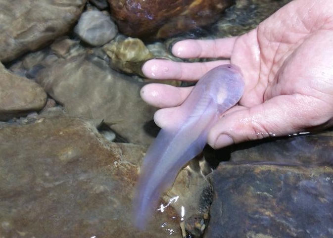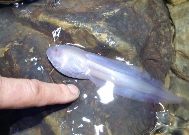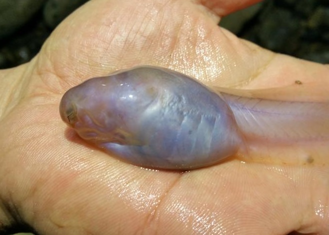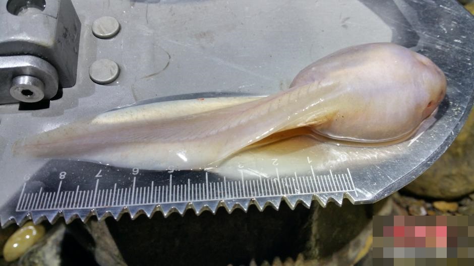 蝌蚪是兩棲動物的幼體,常見的體型都是十分小,不過貴州日前有人在洞穴發現了一條與別不同的蝌蚪,不但體型特大,而且全身透明,十分特別。