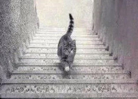 繼「藍黑白金裙」後,網上又流傳一張令人類產生錯覺的照片,吸引大批網民熱烈爭拗,究竟相中的小貓是在上樓梯,還是下樓梯?