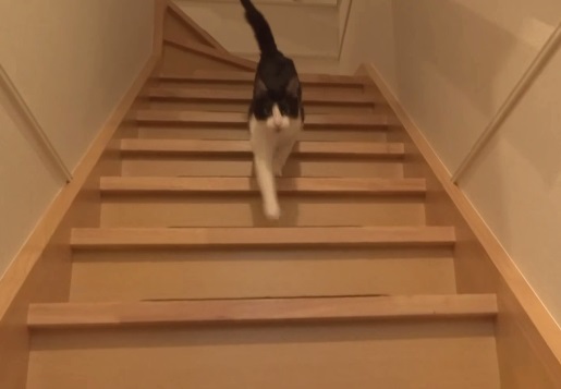 奇相考起全世界 貓咪上樓梯定落樓梯?