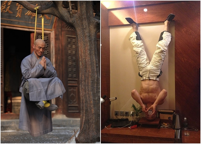 有中國「少林第一武僧」之稱的一龍,他在2010年前後的練功照在網上曝光,當中有不少高難度的動作,例如他在小石柱上踢腿、僅僅以頭部支撐,做出倒立動作,以及在大樹上「吊頸」凌空打坐練功,令人看得目瞪口呆。