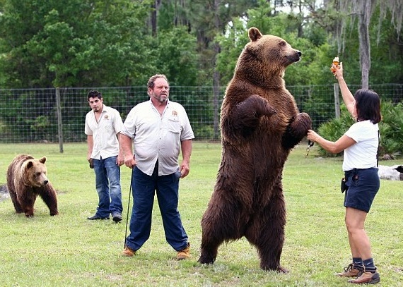 來自佛羅里達州的Johnny Welde一家養了13隻巨熊作寵物,每隻熊身高都超過2米,體重更超過1千磅。雖然巨熊令人感覺上很兇猛,飼養牠們會相當危險,但這家人卻與牠們相處得樂也融融。