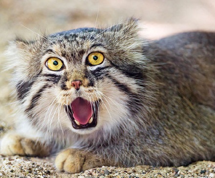 這種表情多多的貓叫做帕拉斯貓(Pallas's Cat),學名為兔猻,由於性格兇猛,所以臉上不時擺出一副兇神惡煞的樣子。儘管帕拉斯貓的樣子兇惡,但表情多多的牠吸引到不少網民留意,甚至笑稱是「表情帝」,亦有人大讚牠們可愛,表示想養一隻在家。