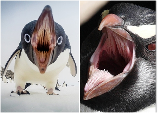 日本網民「sky_ri9u」近日在twitter分享了這幾張照片,相中拍攝了企鵝張口的情況,可見企鵝的口內其實充滿了倒勾,樣子令人不寒而慄。雖然這幾張相早前已在外國網上流傳,但「sky_ri9u」分享後仍引來不少日本網民轉發,紛紛稱十分恐怖,更有人形容牠們是「怪物」,似乎這幾張相完全破壞了網民對企鵝的可愛印象。