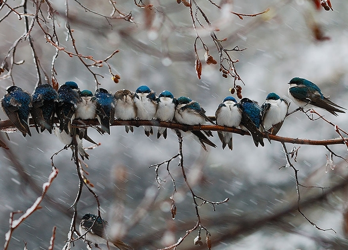 兩個人總比一個人好,一大群人又比兩個人好,尤其在嚴寒天氣下,真的特別渴望溫暖的懷抱。大自然中的雀鳥也許知道自己身驅小小,在嚴寒天氣下實在獨力難支,本能地懂得尋找同伴,緊緊靠在一起互相取暖,形成冬日令人溫暖的一幕。
