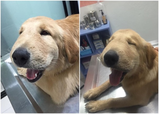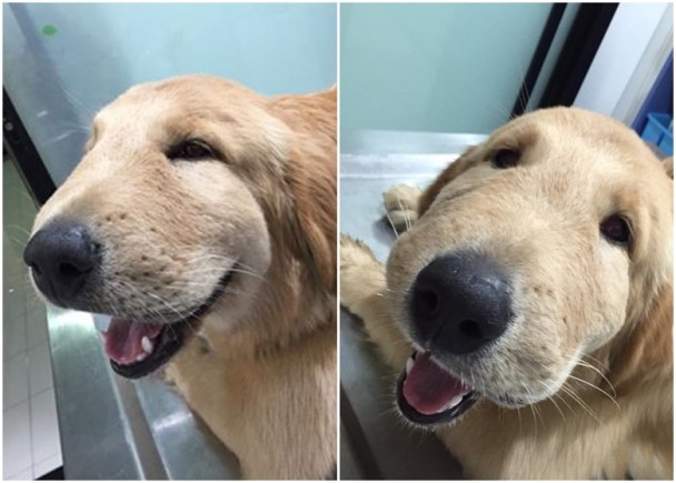 狗狗過敏臉發腫 變豬頭仍開口笑