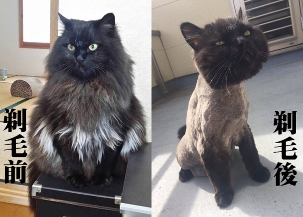 髮型衣著,絕對會影響一個人的氣質。相對,貓咪的毛髮如何,牠的氣質也必如何。Twitter用戶kohaku_komugi早前上傳了一隻外表霸氣十足的長毛黑貓,遭剃毛後,變成頭大身小、圓頭配粗壯四肢,兼身體一截截色的古怪模樣。